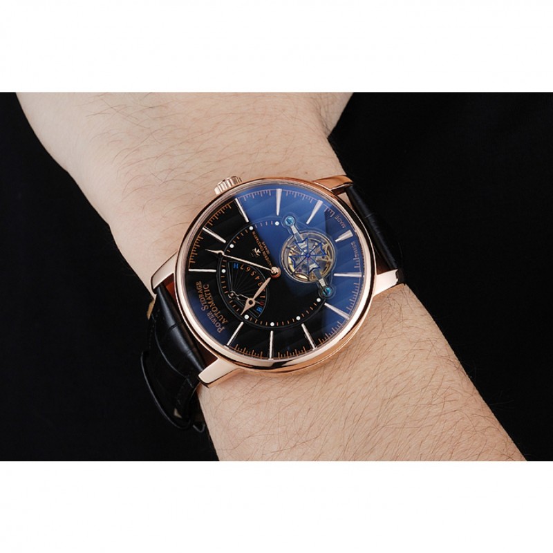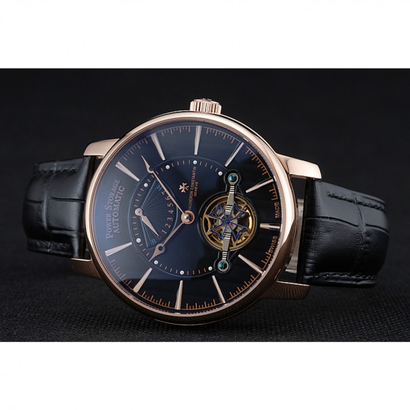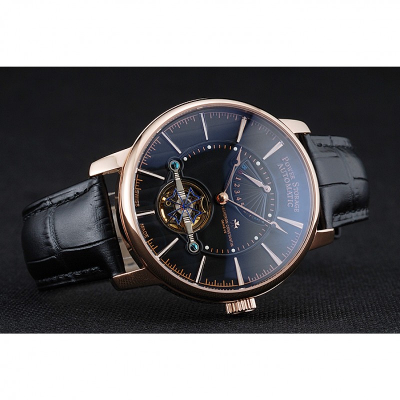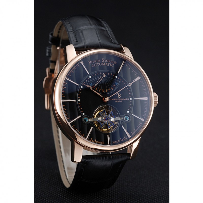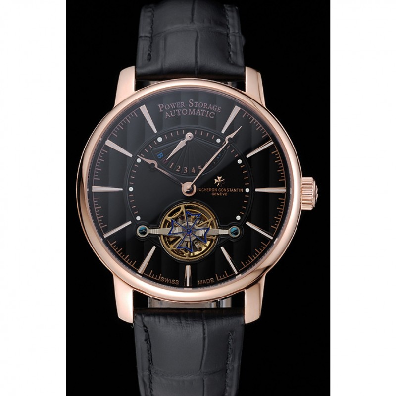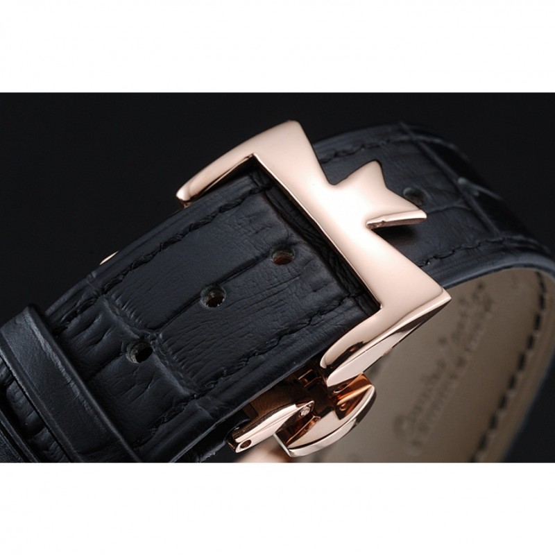 Bracciale: Vacheron Constantin calore impresso cinturino in pelle di coccodrillo nera con Vacheron Constantin logo 18k scolpito in oro rosa placcato hook-fibbia chiusura