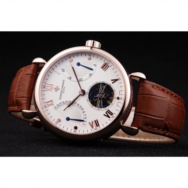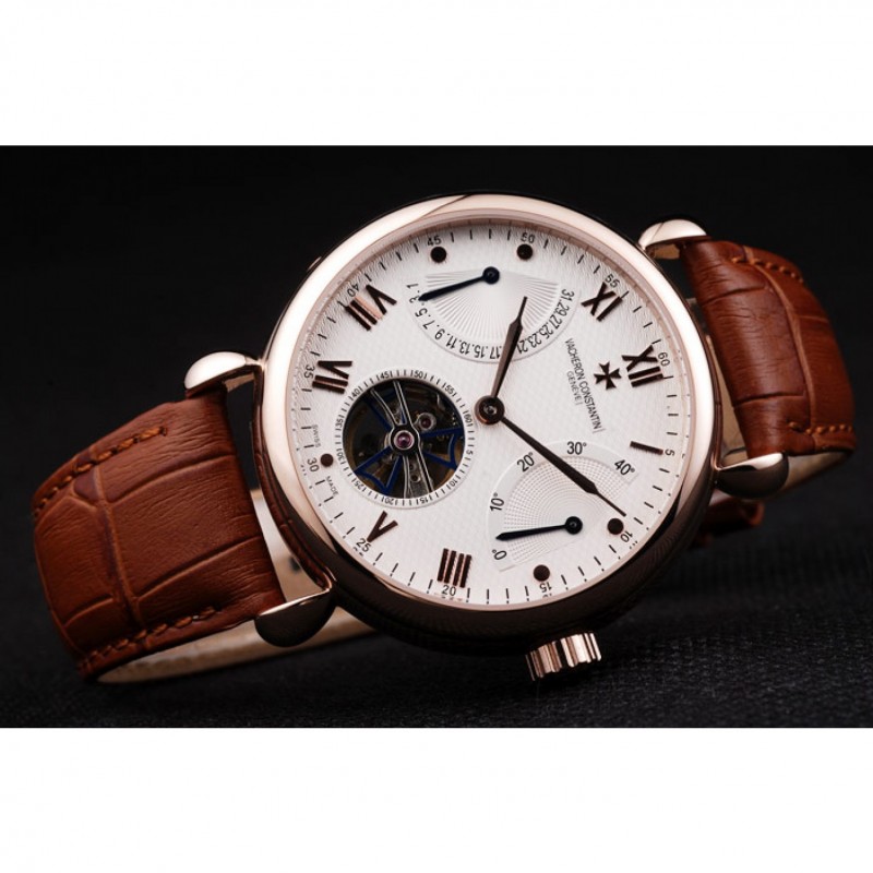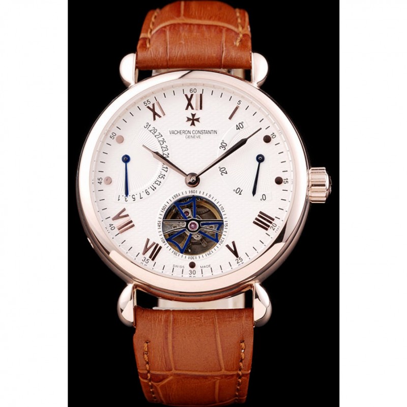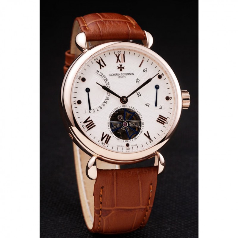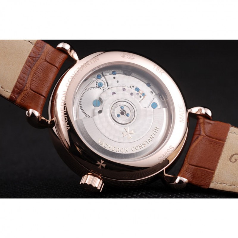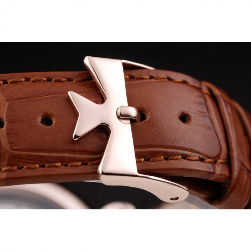 braccialetto:placcatoVacheron Constantin e logo calore impresso cinturino in pelle marrone chiaro coccodrillo con 18k rosa-oro logo a gancio fibbia chiusura