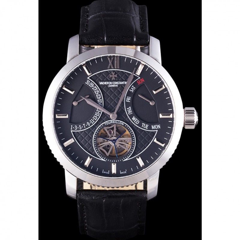 Bracciale: Vacheron Constantin e cinturino in pelle di coccodrillo nero il logo di calore in rilievo con lucido logo in acciaio inox gancio-fibbia chiusura