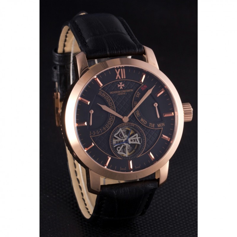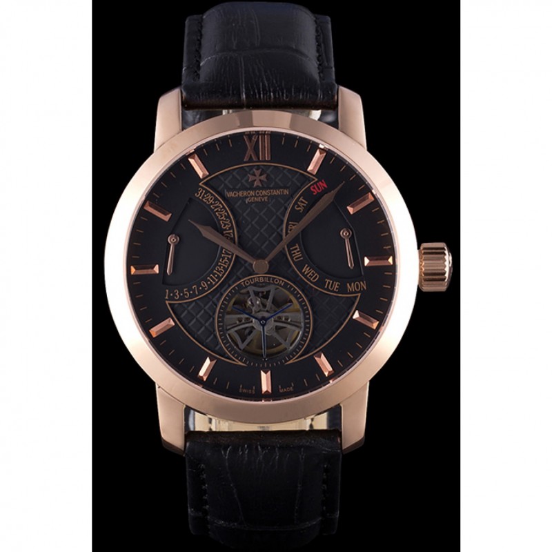 Recensisci per primo “Vacheron Constantin Tourbillon quadrante nero Bracciale in pelle cassa in oro rosa nero”