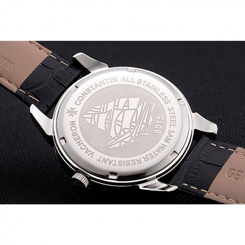 Bracciale:cinturino in pellelogo e calore Vacheron Constantin in rilievo di coccodrillo nero con logo taglio in acciaio inox lucidato chiusura del gancio-fibbia