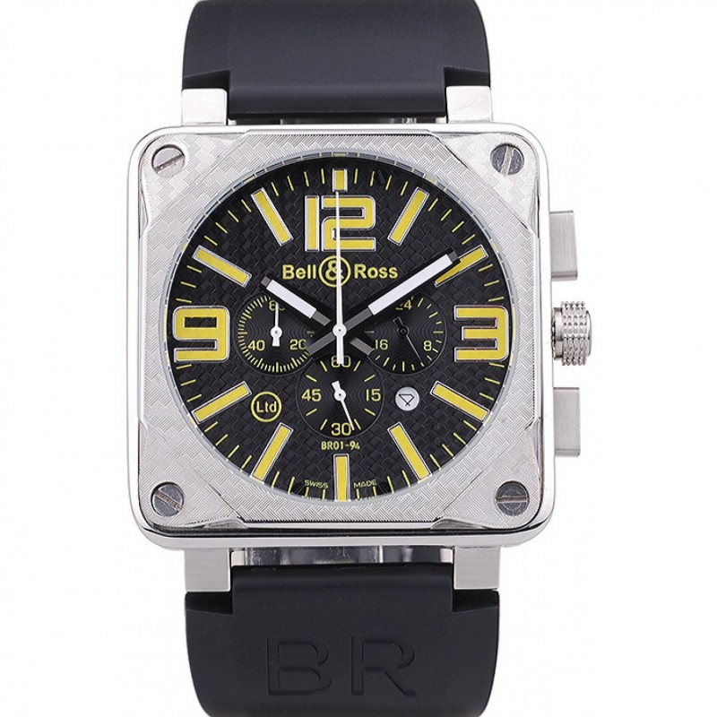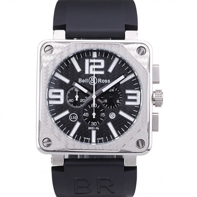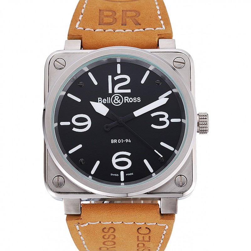 Bell&Ross BR 01-94 quadrante nero cinturino in pelle di caso Marrone Argento