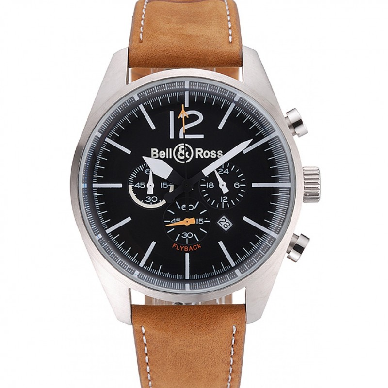Bell&Ross BR126 Flyback nero quadrante argentato cassa in oro Numeri Brown Suede cinturino in pelle