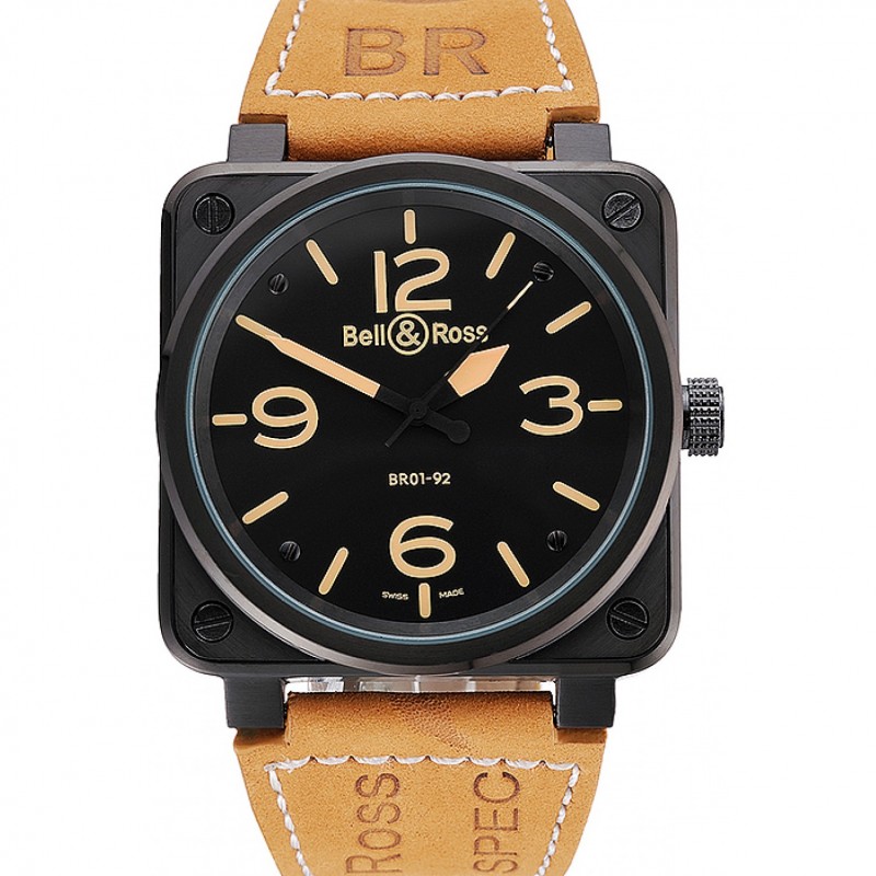 Bell&Ross BR 01-92 quadrante nero cinturino in pelle di caso Marrone Nero