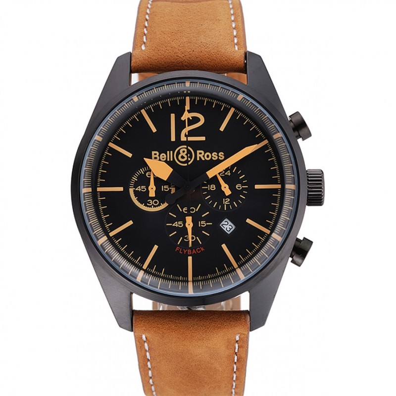 Bell&Ross BR126 Flyback quadrante nero cinturino in pelle nera cassa in oro Numeri Brown Suede