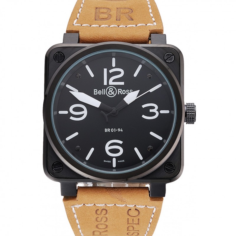 Bell&Ross BR 01-94 quadrante nero cinturino in pelle di caso Marrone Nero