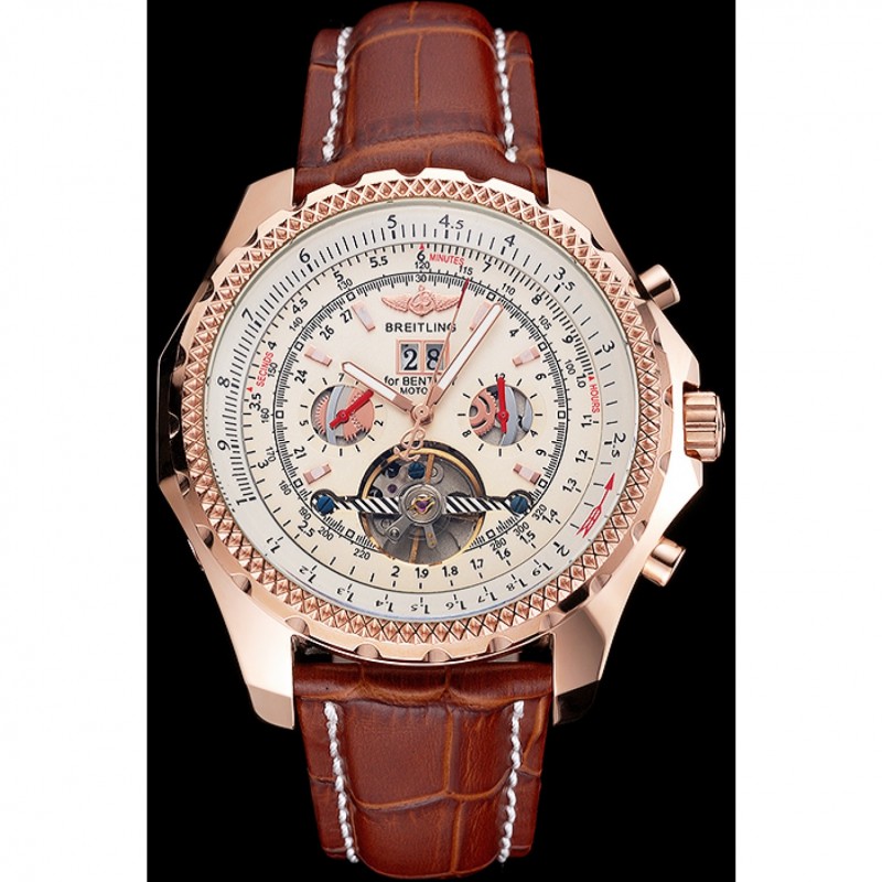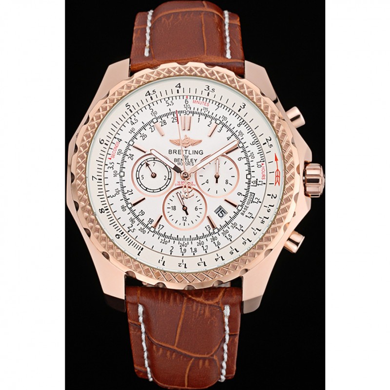 Breitling Bentley Motors Velocità cassa in oro quadrante bianco bracciale in pelle marrone 622.233