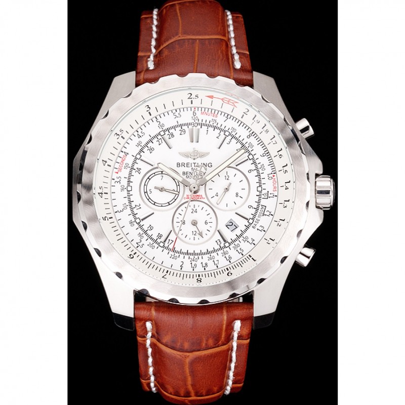 Breitling Bentley Motors T Cassa in acciaio quadrante bianco Brown Leather Bracciale 622.234