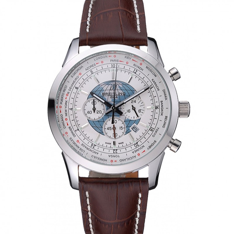 Breitling Transocean Chronograph Unitime quadrante bianco Cassa in acciaio bracciale in pelle marrone 622.244