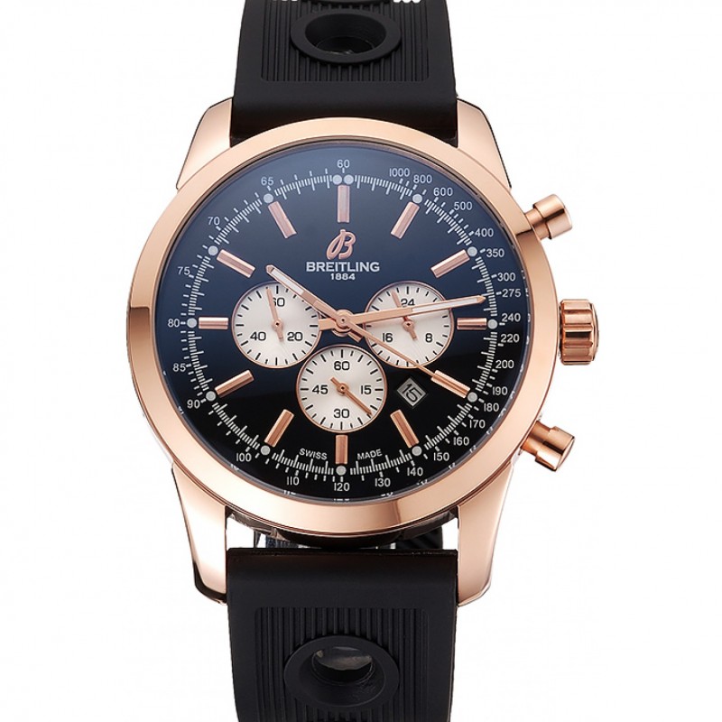 Breitling Navitimer Rosegold lunetta cinturino in gomma quadrante nero