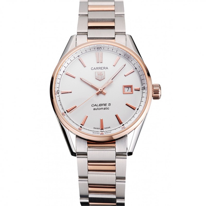 Tag Heuer Carrera Calibre svizzero 5 Bracciale Two Tone quadrante bianco cassa in oro rosa
