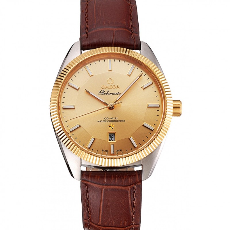 Omega Globemaster oro quadrante e cinturino in pelle Lunetta cassa di acciaio inossidabile Brown