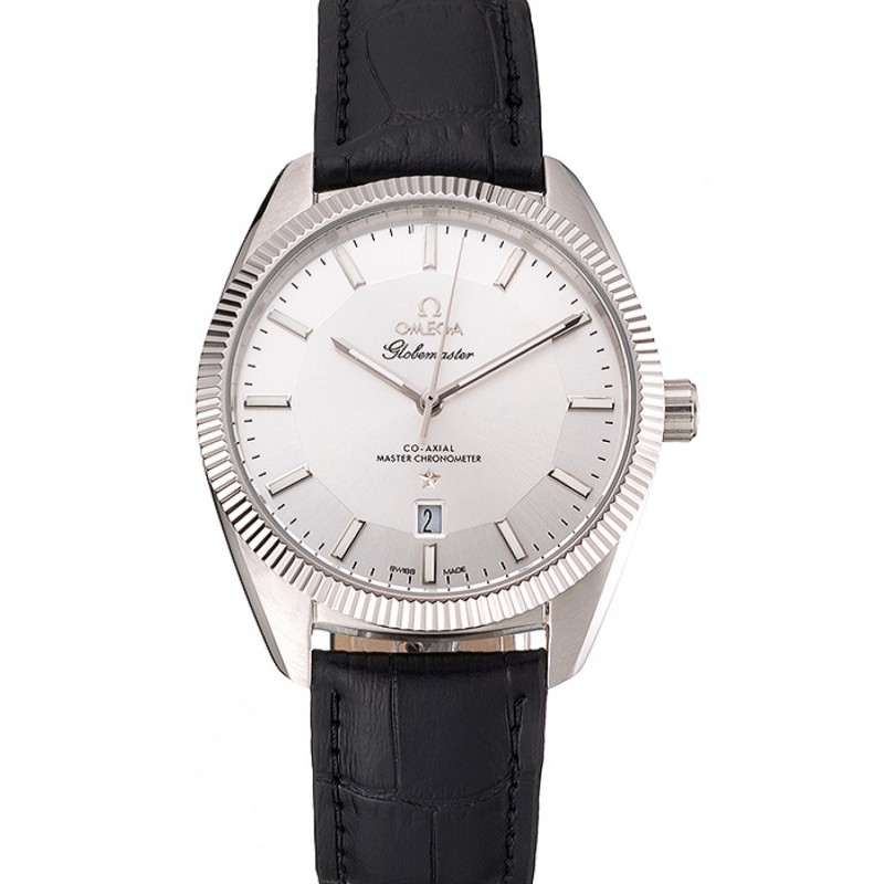 Omega Globemaster Silver Dial Cassa in acciaio nero cinturino in pelle