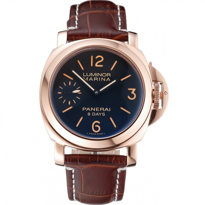 Panerai Luminor Marina 8 Giorni quadrante nero cassa in oro rosa cinturino in pelle marrone