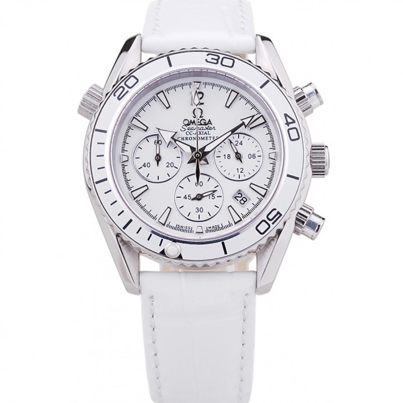 Omega De Ville Chronograph quadrante bianco cassa del diamante in acciaio inossidabile Bracciale in pelle bianca 622.453
