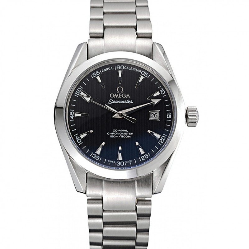 Omega Globemaster Quadrante Blu Cassa in acciaio nero cinturino in pelle