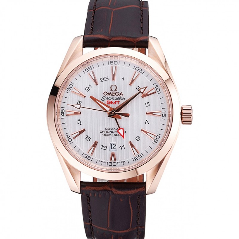 Omega Seamaster Planet Ocean GMT Bianco Dial cassa in oro rosa Brown della fascia del cuoio 622.400