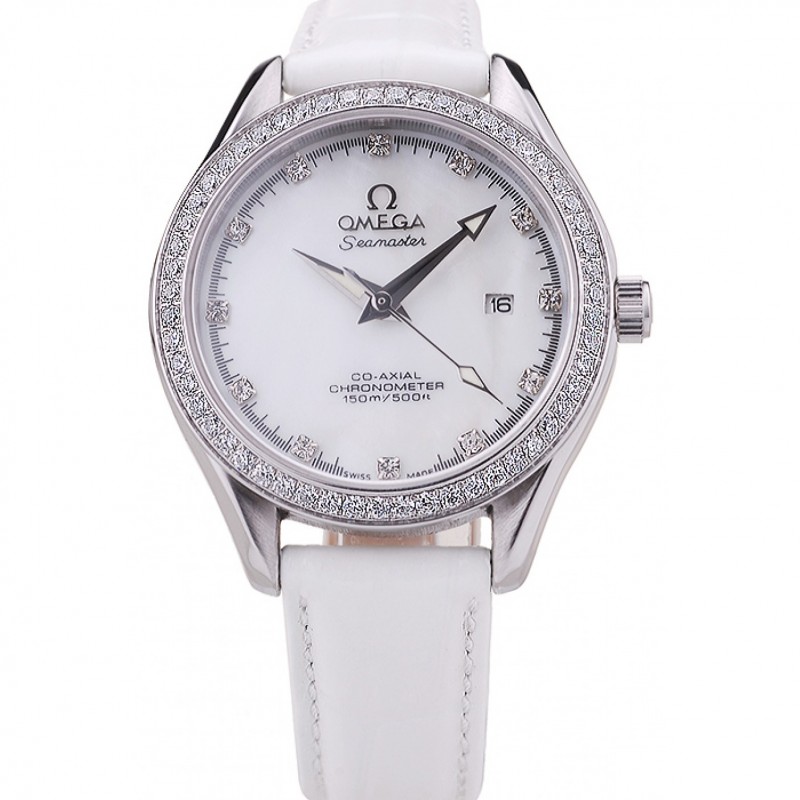 Omega De Ville Prestige No Data quadrante bianco con diamanti cassa in oro rosa Two Tone Bracelet