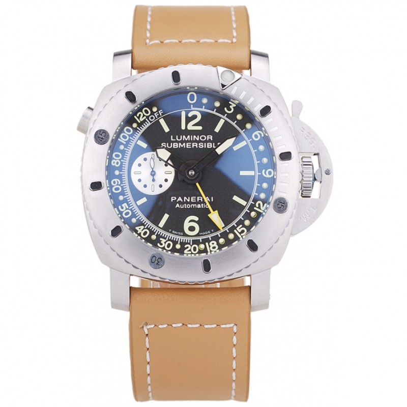 Panerai Luminor spazzolato Cassa in acciaio Quadrante cinturino in pelle marrone