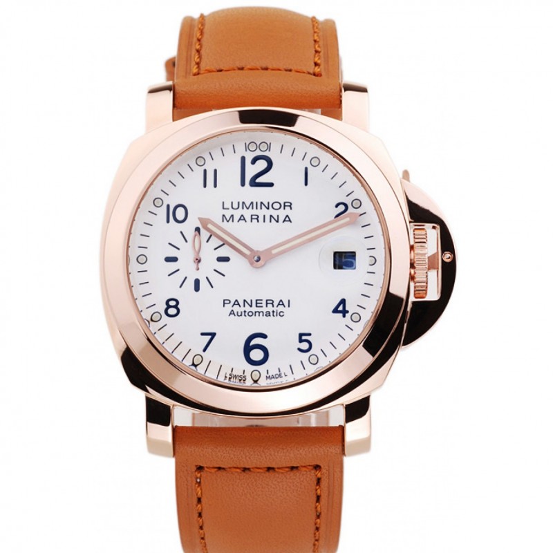 Panerai Luminor Marina quadrante bianco bracciale in pelle marrone