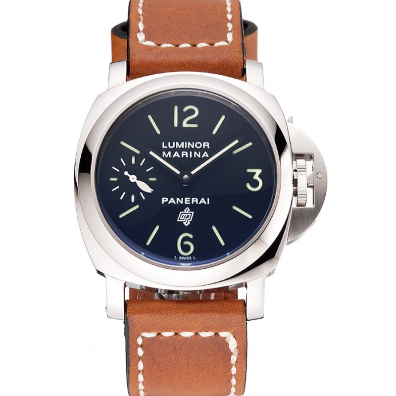 Panerai Luminor Marina quadrante nero Bracciale in pelle marrone