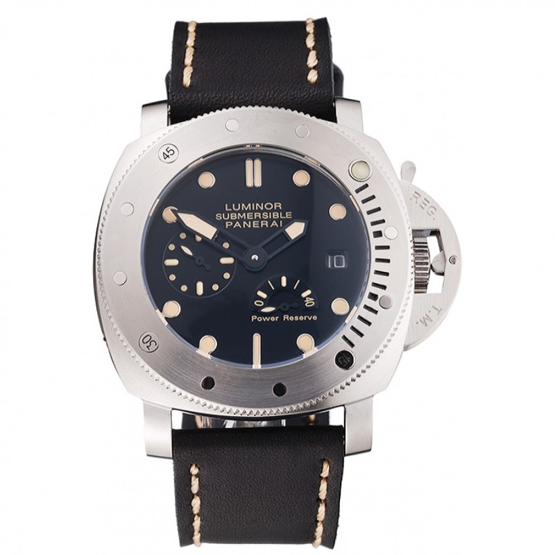 Panerai Luminor sommergibile quadrante nero Cassa in acciaio nero cinturino in pelle