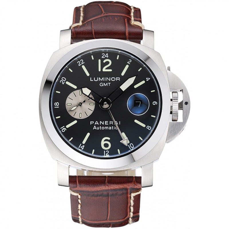Panerai Luminor GMT quadrante nero Bracciale in pelle marrone