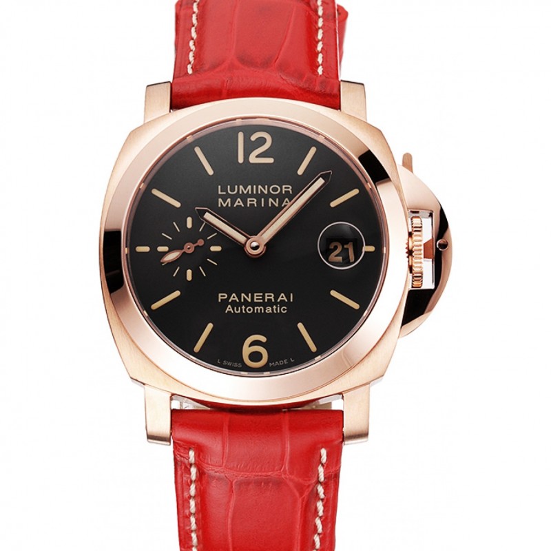 Svizzero Panerai Luminor Marina quadrante nero cassa in oro rosa Red Cinturino in pelle