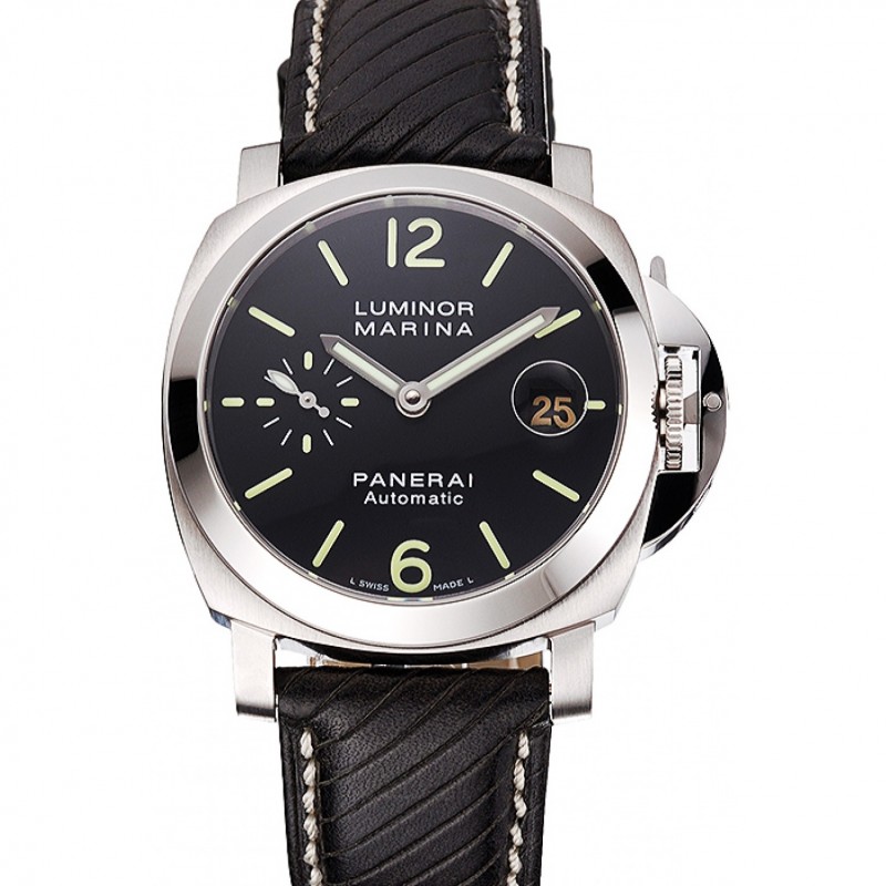 Svizzero Panerai Luminor Marina quadrante nero Cassa in acciaio nero cinturino in pelle