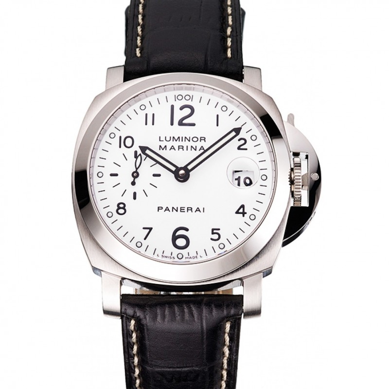 Svizzero Panerai Luminor Marina quadrante bianco Cassa in acciaio nero cinturino in pelle