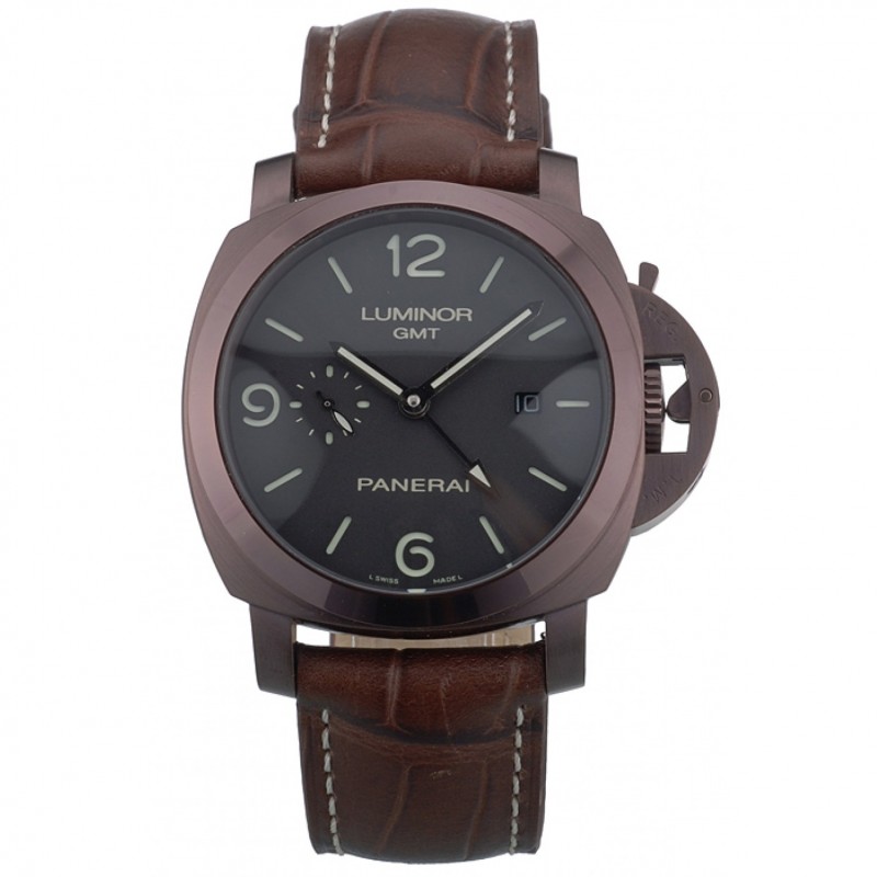 Svizzero Panerai Luminor GMT Carbotech quadrante nero Caso Marrone Nero cinturino in pelle