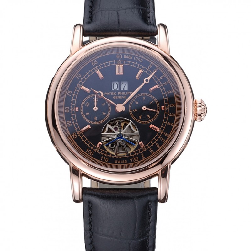 Patek Philippe Geneve Grand Complicazioni quadrante nero Tourbillon Rose lunetta in oro nero Fascia 622.157