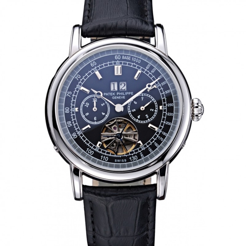 Patek Philippe Geneve Grand Complicazioni fronte nero di Tourbillon del nero dell’acciaio inossidabile Banda 622.155