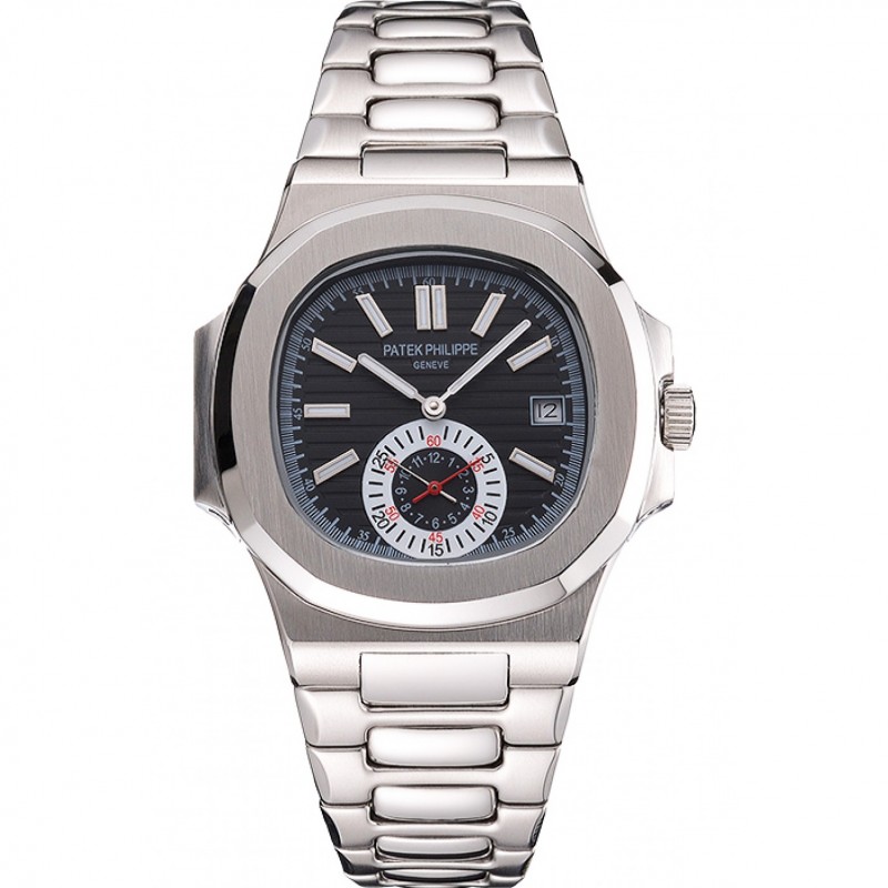 Patek Philippe Nautilus quadrante nero cassa in acciaio e bracciale