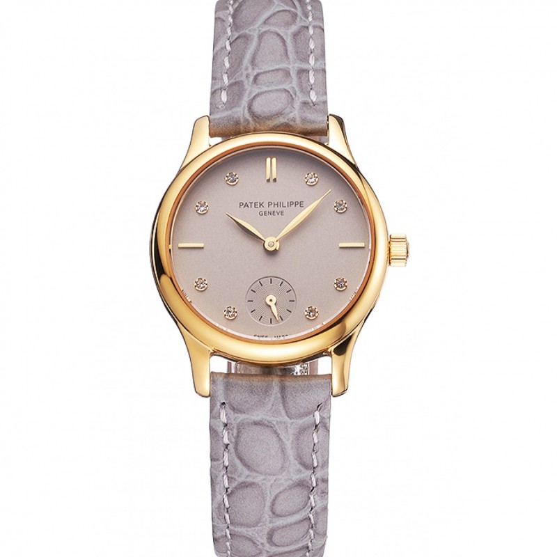 Patek Philippe Calatrava quadrante grigio diamante Marcature cassa in oro grigio Cinturino in pelle
