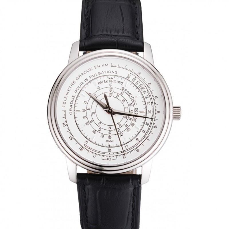 Svizzera Patek Philippe multi-scala del cronografo quadrante bianco Cassa in acciaio nero cinturino in pelle