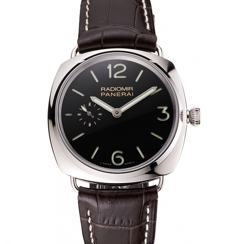 Panerai Radiomir spazzolato Cassa in acciaio quadrante nero cinturino in pelle marrone