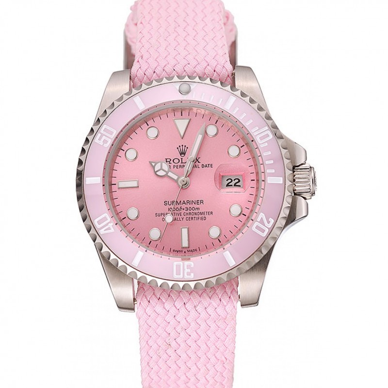 Rolex Submariner Quadrante Rosa Rosa lunetta tessuto rosa Bracciale 1453866