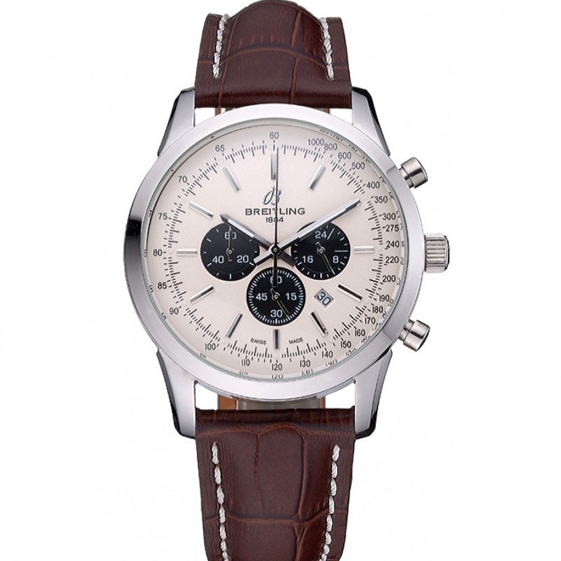 Breitling Transocean Beige quadrante marrone cinturino in pelle, acciaio inossidabile lucido lunetta
