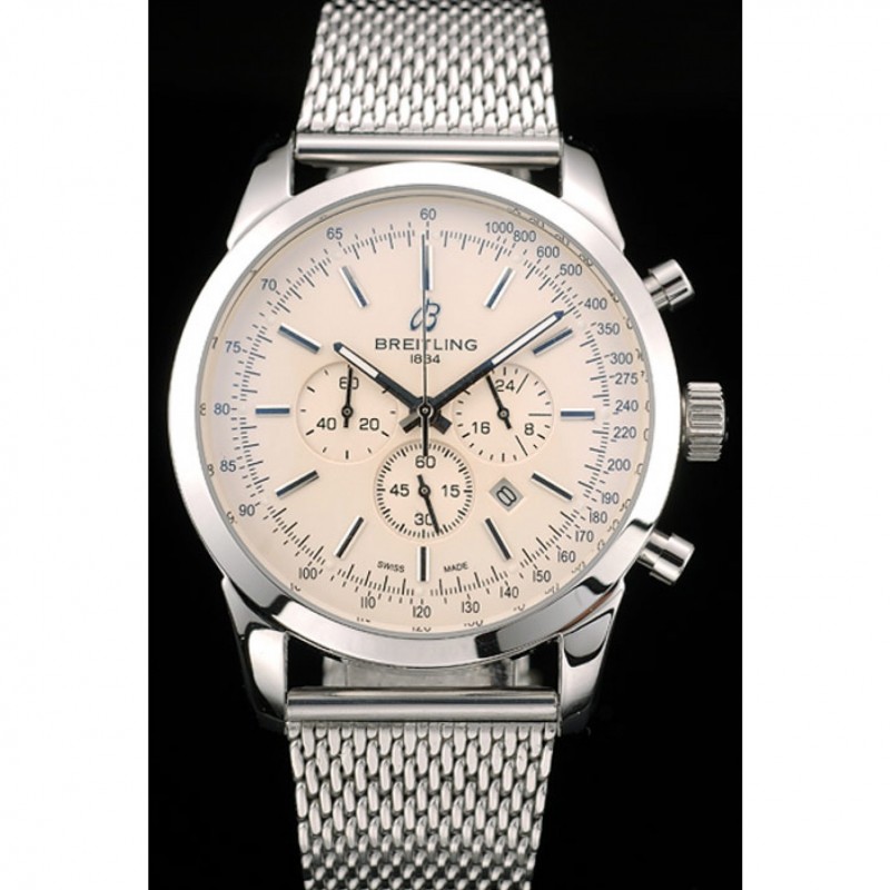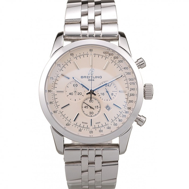 Breitling Transocean quadrante bianco cinturino in acciaio inossidabile