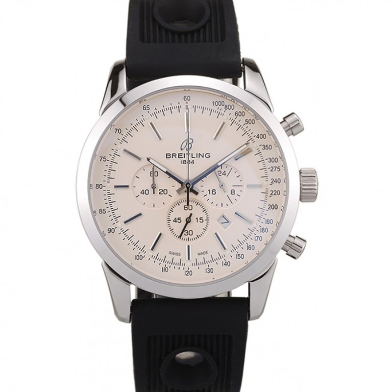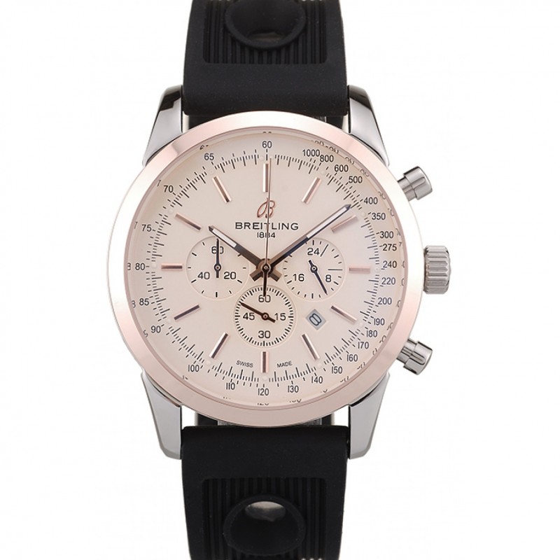 Breitling Transocean quadrante bianco cinturino in caucciù nero Rose lunetta in oro