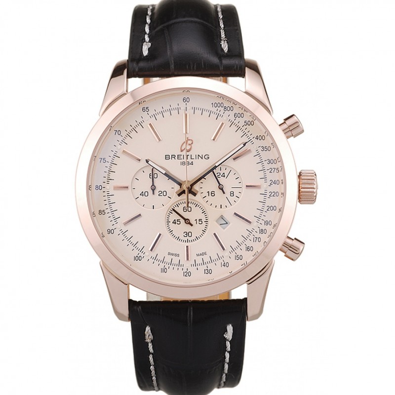 Breitling Transocean quadrante bianco in pelle nera Cinturino in oro rosa Lunetta 98205