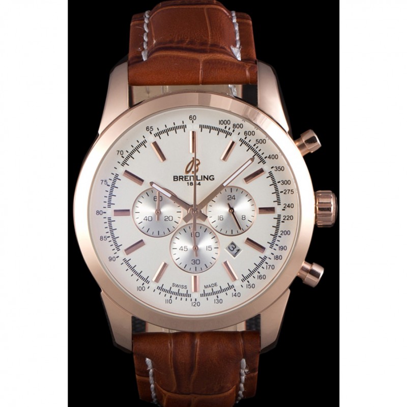 Breitling Transocean quadrante bianco cinturino in pelle marrone oro rosa Lunetta