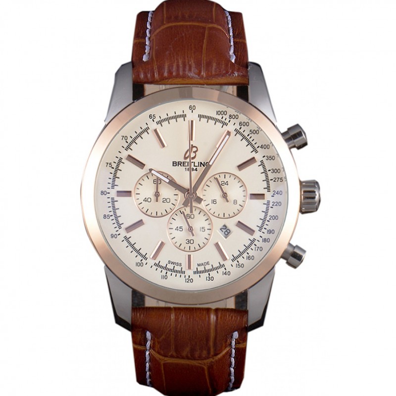 Breitling Transocean quadrante bianco in pelle marrone chiaro cinturino in oro rosa Lunetta