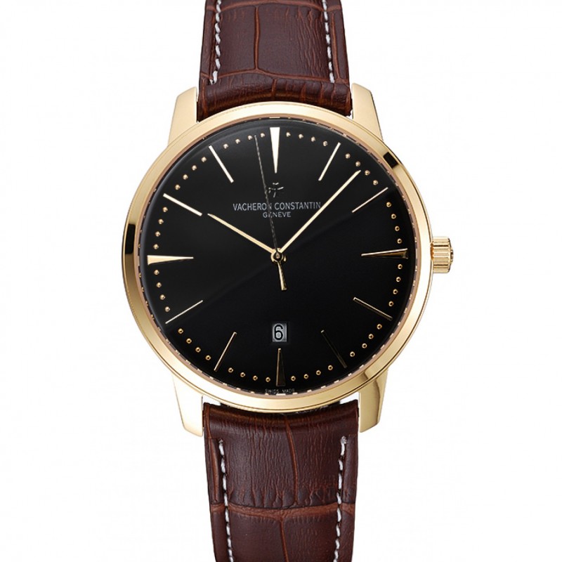 Svizzero Vacheron Constantin Patrimony quadrante nero in pelle oro bracciale Caso Brown 1454179