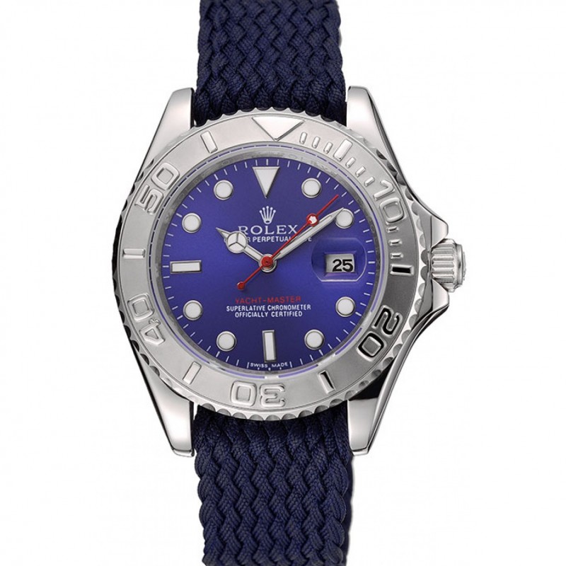 Rolex Yacht Master Quadrante Blu Blu Tessuto Bracciale 1453868